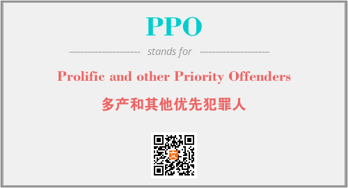 上述内容是“Prolific and other Priority Offenders”作为“PPO”的缩写,解释为“多产和其他优先犯罪人”时的信息,以及英文缩略词PPO所代表的英文单词,其对应的中文拼音、详细解释以及在英文中的流行度和相关分类、应用领域及应用示例等。