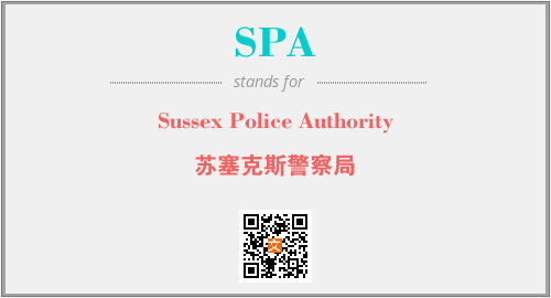 上述内容是“Sussex Police Authority”作为“SPA”的缩写,解释为“苏塞克斯警察局”时的信息,以及英文缩略词SPA所代表的英文单词,其对应的中文拼音、详细解释以及在英文中的流行度和相关分类、应用领域及应用示例等。