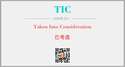 英文缩略词“TIC”经常作为“Taken Into Consideration”的英文缩写来使用,中文表示:“已考虑”。本文将详细介绍英文缩写词TIC所代表英文单词,其对应的中文拼音、详细解释以及在英语中的流行度。此外,还有关于缩略词TIC的分类、应用领域及相关应用示例等。
