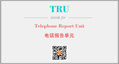 上述内容是“Telephone Report Unit”作为“TRU”的缩写,解释为“电话报告单元”时的信息,以及英文缩略词TRU所代表的英文单词,其对应的中文拼音、详细解释以及在英文中的流行度和相关分类、应用领域及应用示例等。