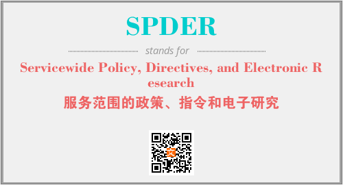以上为Servicewide Policy, Directives, and Electronic Research英文缩略词SPDER的中文解释,以及该英文缩写在英语的流行度、分类和应用领域方面的信息。