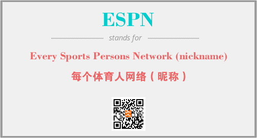 英文缩略词“ESPN”经常作为“Every Sports Persons Network (nickname)”的英文缩写来使用,中文表示:“每个体育人网络(昵称)”。本文将详细介绍英文缩写词ESPN所代表英文单词,其对应的中文拼音、详细解释以及在英语中的流行度。此外,还有关于缩略词ESPN的分类、应用领域及相关应用示例等。