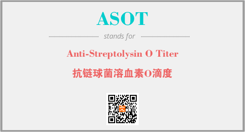 以上为Anti-Streptolysin O Titer英文缩略词ASOT的中文解释,以及该英文缩写在英语的流行度、分类和应用领域方面的信息。