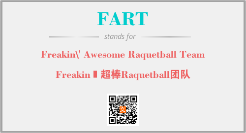 上述内容是“Freakin\' Awesome Raquetball Team”作为“FART”的缩写,解释为“Freakin®超棒Raquetball团队”时的信息,以及英文缩略词FART所代表的英文单词,其对应的中文拼音、详细解释以及在英文中的流行度和相关分类、应用领域及应用示例等。