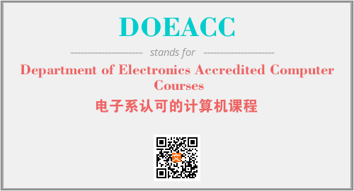 以上为Department of Electronics Accredited Computer Courses英文缩略词DOEACC的中文解释,以及该英文缩写在英语的流行度、分类和应用领域方面的信息。