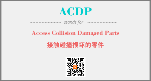 英文缩略词“ACDP”经常作为“Access Collision Damaged Parts”的英文缩写来使用,中文表示:“接触碰撞损坏的零件”。本文将详细介绍英文缩写词ACDP所代表英文单词,其对应的中文拼音、详细解释以及在英语中的流行度。此外,还有关于缩略词ACDP的分类、应用领域及相关应用示例等。
