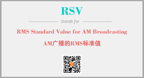 上述内容是“RMS Standard Value for AM Broadcasting”作为“RSV”的缩写,解释为“AM广播的RMS标准值”时的信息,以及英文缩略词RSV所代表的英文单词,其对应的中文拼音、详细解释以及在英文中的流行度和相关分类、应用领域及应用示例等。