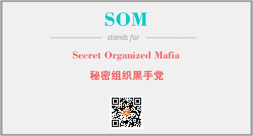 英文缩略词“SOM”经常作为“Secret Organized Mafia”的英文缩写来使用,中文表示:“秘密组织黑手党”。本文将详细介绍英文缩写词SOM所代表英文单词,其对应的中文拼音、详细解释以及在英语中的流行度。此外,还有关于缩略词SOM的分类、应用领域及相关应用示例等。