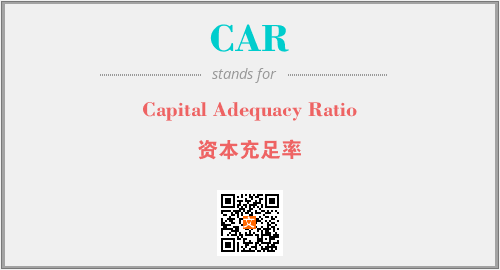 上述内容是“Capital Adequacy Ratio”作为“CAR”的缩写,解释为“资本充足率”时的信息,以及英文缩略词CAR所代表的英文单词,其对应的中文拼音、详细解释以及在英文中的流行度和相关分类、应用领域及应用示例等。