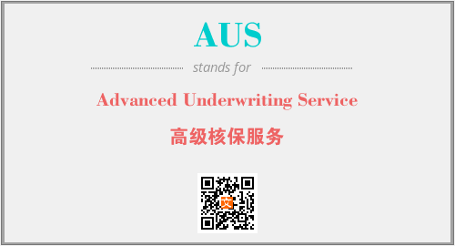 上述内容是“Advanced Underwriting Service”作为“AUS”的缩写,解释为“高级核保服务”时的信息,以及英文缩略词AUS所代表的英文单词,其对应的中文拼音、详细解释以及在英文中的流行度和相关分类、应用领域及应用示例等。