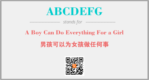 上述内容是“A Boy Can Do Everything For a Girl”作为“ABCDEFG”的缩写,解释为“男孩可以为女孩做任何事”时的信息,以及英文缩略词ABCDEFG所代表的英文单词,其对应的中文拼音、详细解释以及在英文中的流行度和相关分类、应用领域及应用示例等。