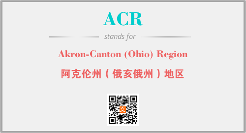 英文缩略词“ACR”经常作为“Akron-Canton (Ohio) Region”的英文缩写来使用,中文表示:“阿克伦州(俄亥俄州)地区”。本文将详细介绍英文缩写词ACR所代表英文单词,其对应的中文拼音、详细解释以及在英语中的流行度。此外,还有关于缩略词ACR的分类、应用领域及相关应用示例等。