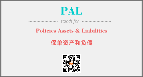 上述内容是“Policies Assets & Liabilities”作为“PAL”的缩写,解释为“保单资产和负债”时的信息,以及英文缩略词PAL所代表的英文单词,其对应的中文拼音、详细解释以及在英文中的流行度和相关分类、应用领域及应用示例等。