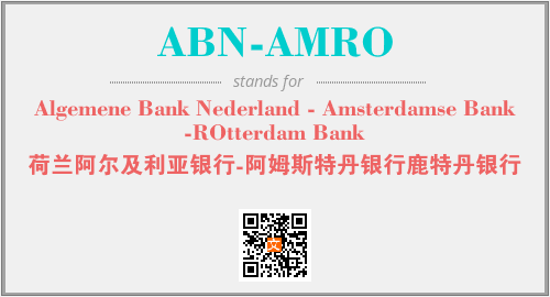 英文缩略词“ABN-AMRO”经常作为“Algemene Bank Nederland - Amsterdamse Bank-ROtterdam Bank”的英文缩写来使用,中文表示:“荷兰阿尔及利亚银行-阿姆斯特丹银行鹿特丹银行”。本文将详细介绍英文缩写词ABN-AMRO所代表英文单词,其对应的中文拼音、详细解释以及在英语中的流行度。此外,还有关于缩略词ABN-AMRO的分类、应用领域及相关应用示例等。