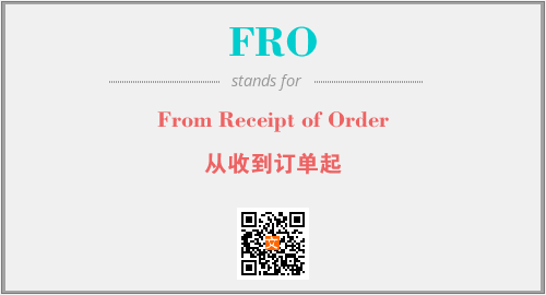 上述内容是“From Receipt of Order”作为“FRO”的缩写,解释为“从收到订单起”时的信息,以及英文缩略词FRO所代表的英文单词,其对应的中文拼音、详细解释以及在英文中的流行度和相关分类、应用领域及应用示例等。