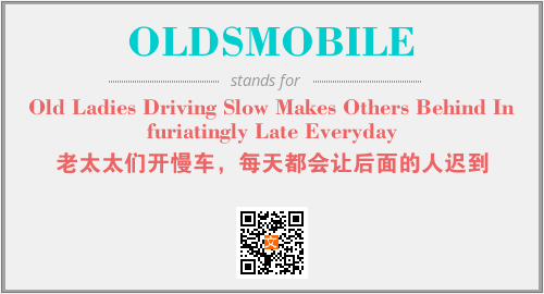 英文缩略词“OLDSMOBILE”经常作为“Old Ladies Driving Slow Makes Others Behind Infuriatingly Late Everyday”的英文缩写来使用,中文表示:“老太太们开慢车,每天都会让后面的人迟到”。本文将详细介绍英文缩写词OLDSMOBILE所代表英文单词,其对应的中文拼音、详细解释以及在英语中的流行度。此外,还有关于缩略词OLDSMOBILE的分类、应用领域及相关应用示例等。