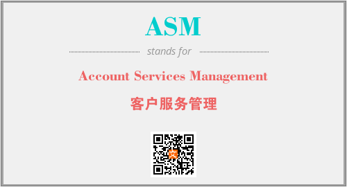 英文缩略词“ASM”经常作为“Account Services Management”的英文缩写来使用,中文表示:“客户服务管理”。本文将详细介绍英文缩写词ASM所代表英文单词,其对应的中文拼音、详细解释以及在英语中的流行度。此外,还有关于缩略词ASM的分类、应用领域及相关应用示例等。