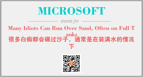 以上为Many Idiots Can Run Over Sand, Often on Full Tanks英文缩略词MICROSOFT的中文解释,以及该英文缩写在英语的流行度、分类和应用领域方面的信息。