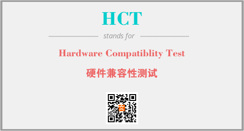 英文缩略词“HCT”经常作为“Hardware Compatiblity Test”的英文缩写来使用,中文表示:“硬件兼容性测试”。本文将详细介绍英文缩写词HCT所代表英文单词,其对应的中文拼音、详细解释以及在英语中的流行度。此外,还有关于缩略词HCT的分类、应用领域及相关应用示例等。