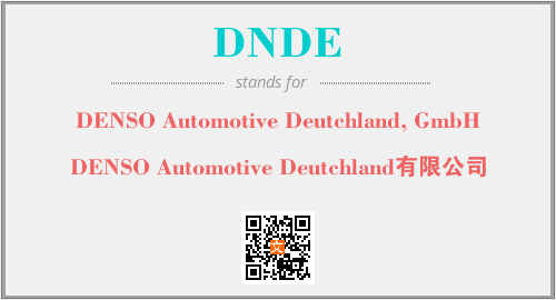 上述内容是“DENSO Automotive Deutchland, GmbH”作为“DNDE”的缩写,解释为“DENSO Automotive Deutchland有限公司”时的信息,以及英文缩略词DNDE所代表的英文单词,其对应的中文拼音、详细解释以及在英文中的流行度和相关分类、应用领域及应用示例等。