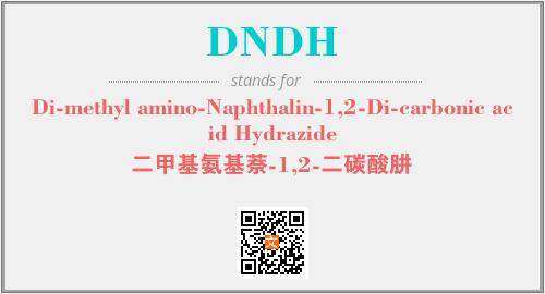 上述内容是“Di-methyl amino-Naphthalin-1,2-Di-carbonic acid Hydrazide”作为“DNDH”的缩写,解释为“二甲基氨基萘-1,2-二碳酸肼”时的信息,以及英文缩略词DNDH所代表的英文单词,其对应的中文拼音、详细解释以及在英文中的流行度和相关分类、应用领域及应用示例等。