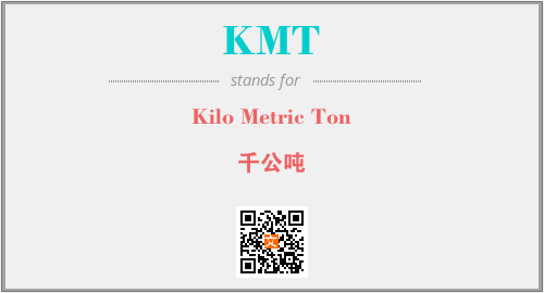 上述内容是“Kilo Metric Ton”作为“KMT”的缩写,解释为“千公吨”时的信息,以及英文缩略词KMT所代表的英文单词,其对应的中文拼音、详细解释以及在英文中的流行度和相关分类、应用领域及应用示例等。