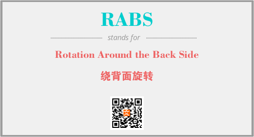 上述内容是“Rotation Around the Back Side”作为“RABS”的缩写,解释为“绕背面旋转”时的信息,以及英文缩略词RABS所代表的英文单词,其对应的中文拼音、详细解释以及在英文中的流行度和相关分类、应用领域及应用示例等。