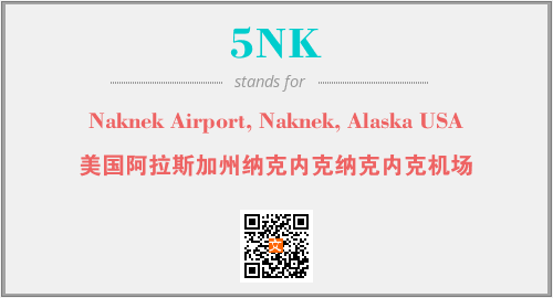 上述内容是“Naknek Airport, Naknek, Alaska USA”作为“5NK”的缩写,解释为“美国阿拉斯加州纳克内克纳克内克机场”时的信息,以及英文缩略词5NK所代表的英文单词,其对应的中文拼音、详细解释以及在英文中的流行度和相关分类、应用领域及应用示例等。