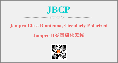 上述内容是“Jampro Class B antenna, Circularly Polarized”作为“JBCP”的缩写,解释为“Jampro B类圆极化天线”时的信息,以及英文缩略词JBCP所代表的英文单词,其对应的中文拼音、详细解释以及在英文中的流行度和相关分类、应用领域及应用示例等。