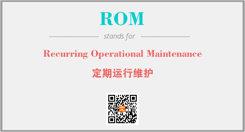 上述内容是“Recurring Operational Maintenance”作为“ROM”的缩写,解释为“定期运行维护”时的信息,以及英文缩略词ROM所代表的英文单词,其对应的中文拼音、详细解释以及在英文中的流行度和相关分类、应用领域及应用示例等。