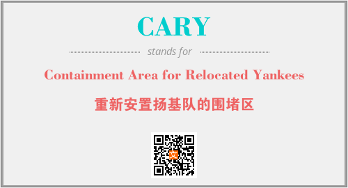 上述内容是“Containment Area for Relocated Yankees”作为“CARY”的缩写,解释为“重新安置扬基队的围堵区”时的信息,以及英文缩略词CARY所代表的英文单词,其对应的中文拼音、详细解释以及在英文中的流行度和相关分类、应用领域及应用示例等。