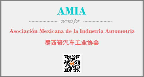 上述内容是“Asociación Mexicana de la Industria Automotriz”作为“AMIA”的缩写,解释为“墨西哥汽车工业协会”时的信息,以及英文缩略词AMIA所代表的英文单词,其对应的中文拼音、详细解释以及在英文中的流行度和相关分类、应用领域及应用示例等。