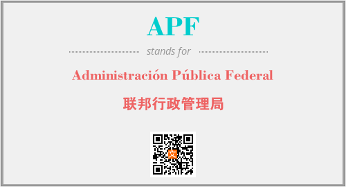 英文缩略词“APF”经常作为“Administración Pública Federal”的英文缩写来使用,中文表示:“联邦行政管理局”。本文将详细介绍英文缩写词APF所代表英文单词,其对应的中文拼音、详细解释以及在英语中的流行度。此外,还有关于缩略词APF的分类、应用领域及相关应用示例等。