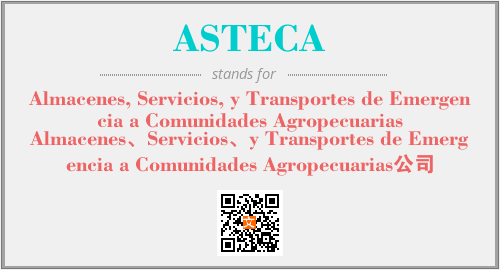 上述内容是“Almacenes, Servicios, y Transportes de Emergencia a Comunidades Agropecuarias”作为“ASTECA”的缩写,解释为“Almacenes、Servicios、y Transportes de Emergencia a Comunidades Agropecuarias公司”时的信息,以及英文缩略词ASTECA所代表的英文单词,其对应的中文拼音、详细解释以及在英文中的流行度和相关分类、应用领域及应用示例等。