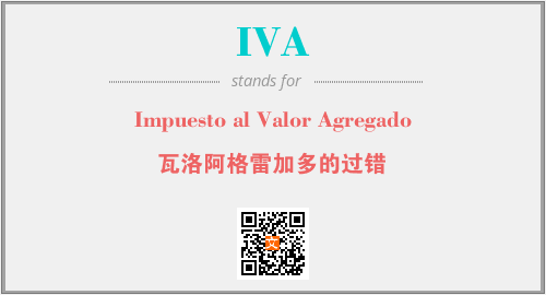 上述内容是“Impuesto al Valor Agregado”作为“IVA”的缩写,解释为“瓦洛阿格雷加多的过错”时的信息,以及英文缩略词IVA所代表的英文单词,其对应的中文拼音、详细解释以及在英文中的流行度和相关分类、应用领域及应用示例等。