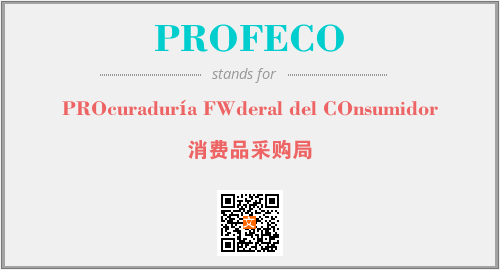 上述内容是“PROcuraduría FWderal del COnsumidor”作为“PROFECO”的缩写,解释为“消费品采购局”时的信息,以及英文缩略词PROFECO所代表的英文单词,其对应的中文拼音、详细解释以及在英文中的流行度和相关分类、应用领域及应用示例等。