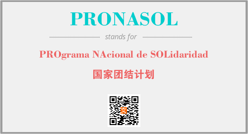 上述内容是“PROgrama NAcional de SOLidaridad”作为“PRONASOL”的缩写,解释为“国家团结计划”时的信息,以及英文缩略词PRONASOL所代表的英文单词,其对应的中文拼音、详细解释以及在英文中的流行度和相关分类、应用领域及应用示例等。