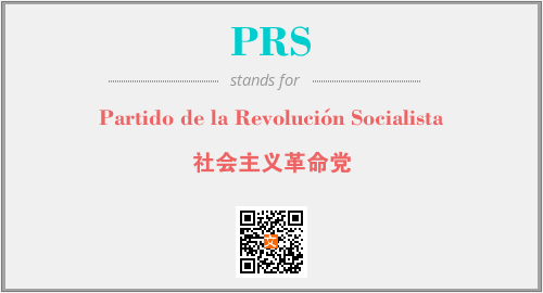 上述内容是“Partido de la Revolución Socialista”作为“PRS”的缩写,解释为“社会主义革命党”时的信息,以及英文缩略词PRS所代表的英文单词,其对应的中文拼音、详细解释以及在英文中的流行度和相关分类、应用领域及应用示例等。