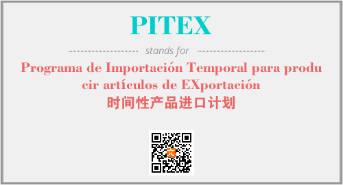 英文缩略词“PITEX”经常作为“Programa de Importación Temporal para producir artículos de EXportación”的英文缩写来使用,中文表示:“时间性产品进口计划”。本文将详细介绍英文缩写词PITEX所代表英文单词,其对应的中文拼音、详细解释以及在英语中的流行度。此外,还有关于缩略词PITEX的分类、应用领域及相关应用示例等。