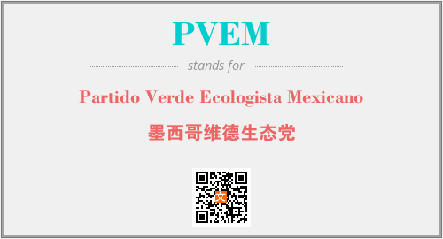 以上为Partido Verde Ecologista Mexicano英文缩略词PVEM的中文解释,以及该英文缩写在英语的流行度、分类和应用领域方面的信息。