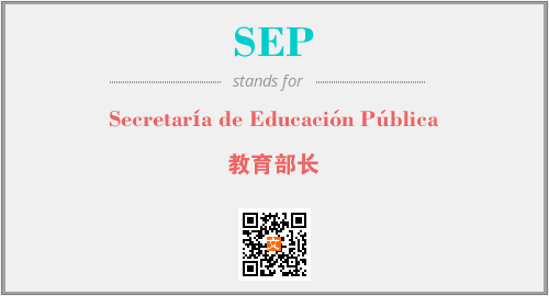 英文缩略词“SEP”经常作为“Secretaría de Educación Pública”的英文缩写来使用,中文表示:“教育部长”。本文将详细介绍英文缩写词SEP所代表英文单词,其对应的中文拼音、详细解释以及在英语中的流行度。此外,还有关于缩略词SEP的分类、应用领域及相关应用示例等。