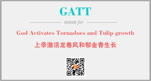 上述内容是“God Activates Tornadoes and Tulip growth”作为“GATT”的缩写,解释为“上帝激活龙卷风和郁金香生长”时的信息,以及英文缩略词GATT所代表的英文单词,其对应的中文拼音、详细解释以及在英文中的流行度和相关分类、应用领域及应用示例等。