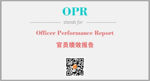 上述内容是“Officer Performance Report”作为“OPR”的缩写,解释为“官员绩效报告”时的信息,以及英文缩略词OPR所代表的英文单词,其对应的中文拼音、详细解释以及在英文中的流行度和相关分类、应用领域及应用示例等。