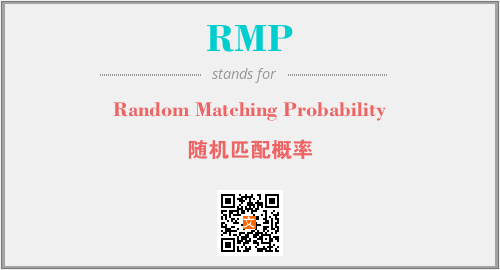上述内容是“Random Matching Probability”作为“RMP”的缩写,解释为“随机匹配概率”时的信息,以及英文缩略词RMP所代表的英文单词,其对应的中文拼音、详细解释以及在英文中的流行度和相关分类、应用领域及应用示例等。