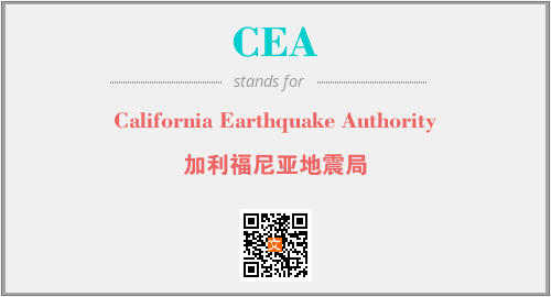 以上为California Earthquake Authority英文缩略词CEA的中文解释,以及该英文缩写在英语的流行度、分类和应用领域方面的信息。