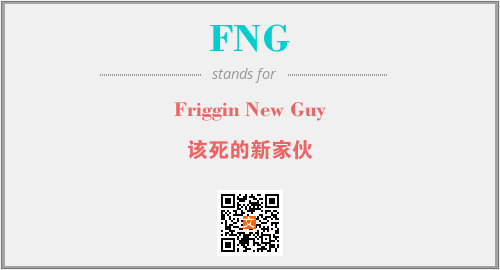 以上为Friggin New Guy英文缩略词FNG的中文解释,以及该英文缩写在英语的流行度、分类和应用领域方面的信息。