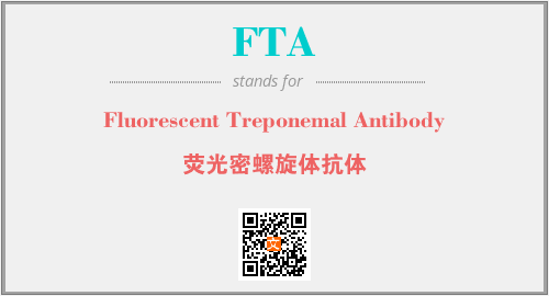 英文缩略词“FTA”经常作为“Fluorescent Treponemal Antibody”的英文缩写来使用,中文表示:“荧光密螺旋体抗体”。本文将详细介绍英文缩写词FTA所代表英文单词,其对应的中文拼音、详细解释以及在英语中的流行度。此外,还有关于缩略词FTA的分类、应用领域及相关应用示例等。