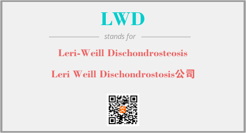 上述内容是“Leri-Weill Dischondrosteosis”作为“LWD”的缩写,解释为“Leri Weill Dischondrostosis公司”时的信息,以及英文缩略词LWD所代表的英文单词,其对应的中文拼音、详细解释以及在英文中的流行度和相关分类、应用领域及应用示例等。