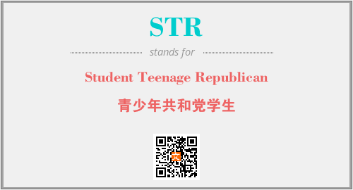 以上为Student Teenage Republican英文缩略词STR的中文解释,以及该英文缩写在英语的流行度、分类和应用领域方面的信息。