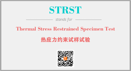 上述内容是“Thermal Stress Restrained Specimen Test”作为“STRST”的缩写,解释为“热应力约束试样试验”时的信息,以及英文缩略词STRST所代表的英文单词,其对应的中文拼音、详细解释以及在英文中的流行度和相关分类、应用领域及应用示例等。